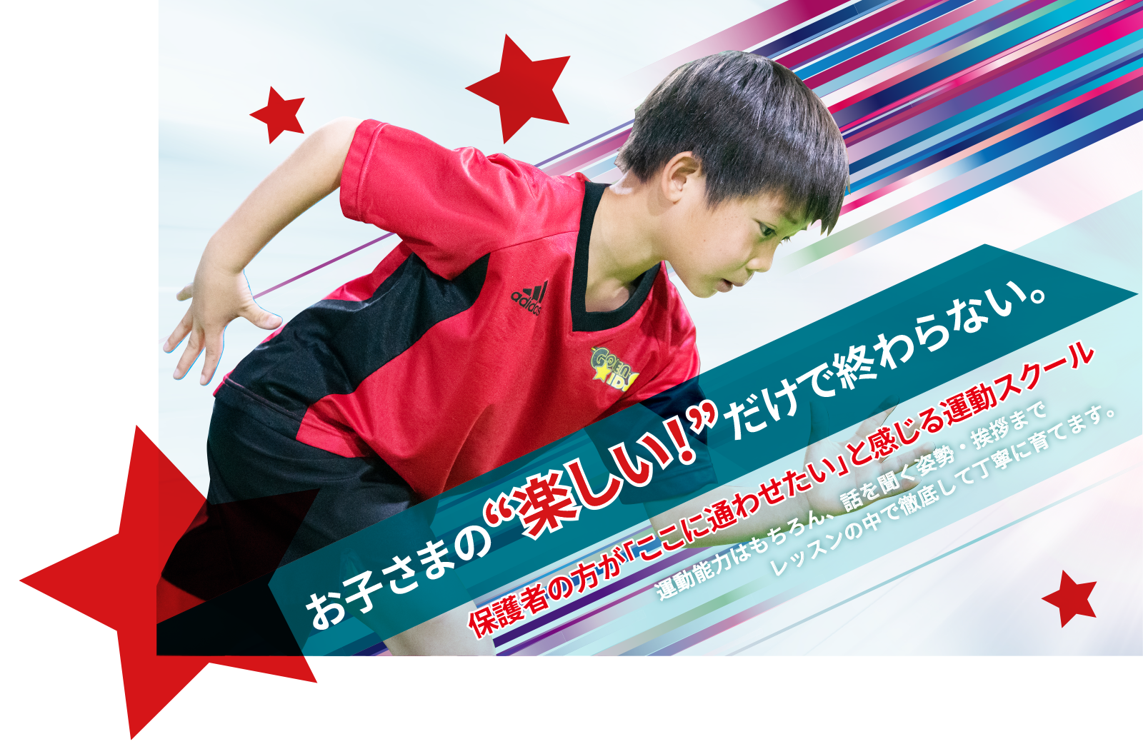 現在サッカーもやっているので、その上達に役立つと思い通わせ始めました。いろいろなスポーツに通じる動きをレッスンすることで、どのスポーツに挑戦するにもスムーズに始められると感じました。
